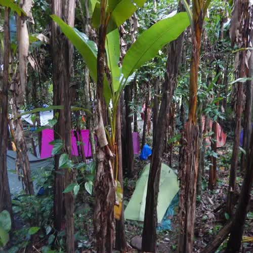 คำอธิบาย : การตั้งแค้มป์ ตั้งเต้นท์ พักแรมในป่า การเดินป่า ในเขตพื้นที่อุทยานแห่งชาติดงหัวสาว ที่ราบสูงบอละเวน เมืองปากซอง ประเทศลาว |