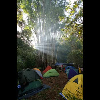 | คำอธิบาย : การตั้งแค้มป์ ตั้งเต้นท์ พักแรมในป่า การเดินป่า ในเขตพื้นที่อุทยานแห่งชาติดงหัวสาว ที่ราบสูงบอละเวน เมืองปากซอง ประเทศลาว |