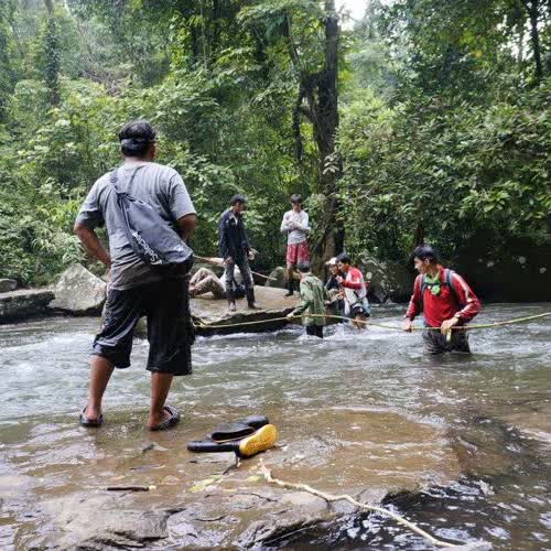 | คำอธิบาย : การเดินป่า การท่องเที่ยวเชิงอนุรักษ์โดยการเดินทางในป่า เขตพื้นที่อุทยานแห่งชาติดงหัวสาว ที่ราบสูงบอละเวน เมืองปากซอง ประเทศลาว (ปากเซ แขวงจำปาสัก สปป.ลาว) |
