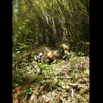 | คำอธิบาย : การเดินป่า การท่องเที่ยวเชิงอนุรักษ์โดยการเดินทางในป่า เขตพื้นที่อุทยานแห่งชาติดงหัวสาว ที่ราบสูงบอละเวน เมืองปากซอง ประเทศลาว (ปากเซ แขวงจำปาสัก สปป.ลาว) |