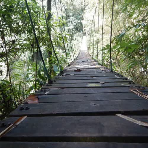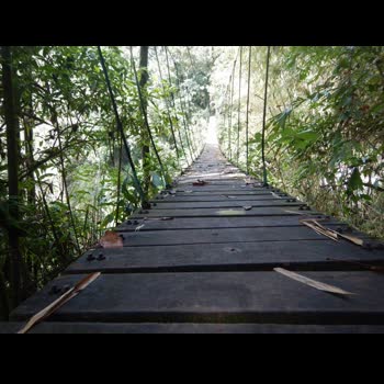 | คำอธิบาย : สะพานข้ามน้ำ และข้ามระหว่างหน้าผาสูง การเดินทางในป่า เขตพื้นที่อุทยานแห่งชาติดงหัวสาว ที่ราบสูงบอละเวน เมืองปากซอง ประเทศลาว |