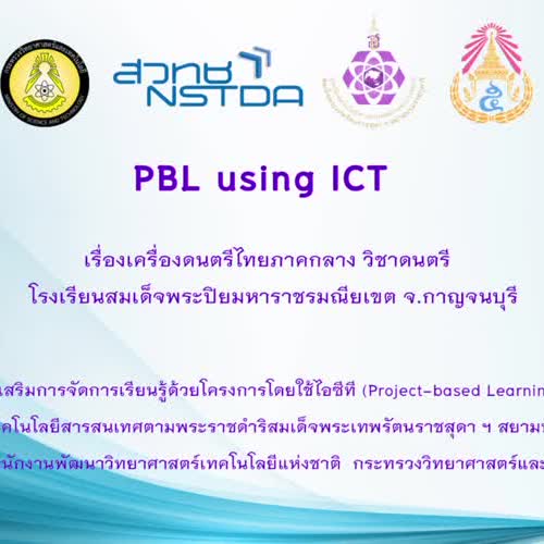 คำอธิบาย : วีดิโอนำเสนอ การเรียนรู้ด้วยโครงการโดยใช้ไอซีที (Project-based Learning using ICT) เรื่องเครื่องดนตรีไทยภาคกลาง ระดับชั้น ม.5 เนื่องจากวิชาดนตรีไทยมีเนื้อหาทฤษฎีมีมาก ถ้าบรรยายอย่างเดียว นักเรียนจะไม่สนใจ และในส่วนของภาคปฏิบัติมักพบว่าเครื่องดนตรีมีจำกัด ไม่มีเพียงพอที่จะให้นักเรียนได้ทดลองเล่น ครูจึงได้เปลี่ยนจากการบรรยาย เป็น ให้นักเรียนทำชิ้นงานวีดิโอเครื่องดนตรีไทยที่สนใจกลุ่มละ 1 เรื่องใช้เครื่องมือไอซีทีที่มี เช่น โทรศัพท์มือถือ โน้ตบุคส่วนตัว หรือเครื่องคอมพิวเตอร์ของโรงเรียนนำวีดิโอที่เสร็จแล้ว มานำเสนอ แลกเปลี่ยนเรียนรู้ร่วมกัน |