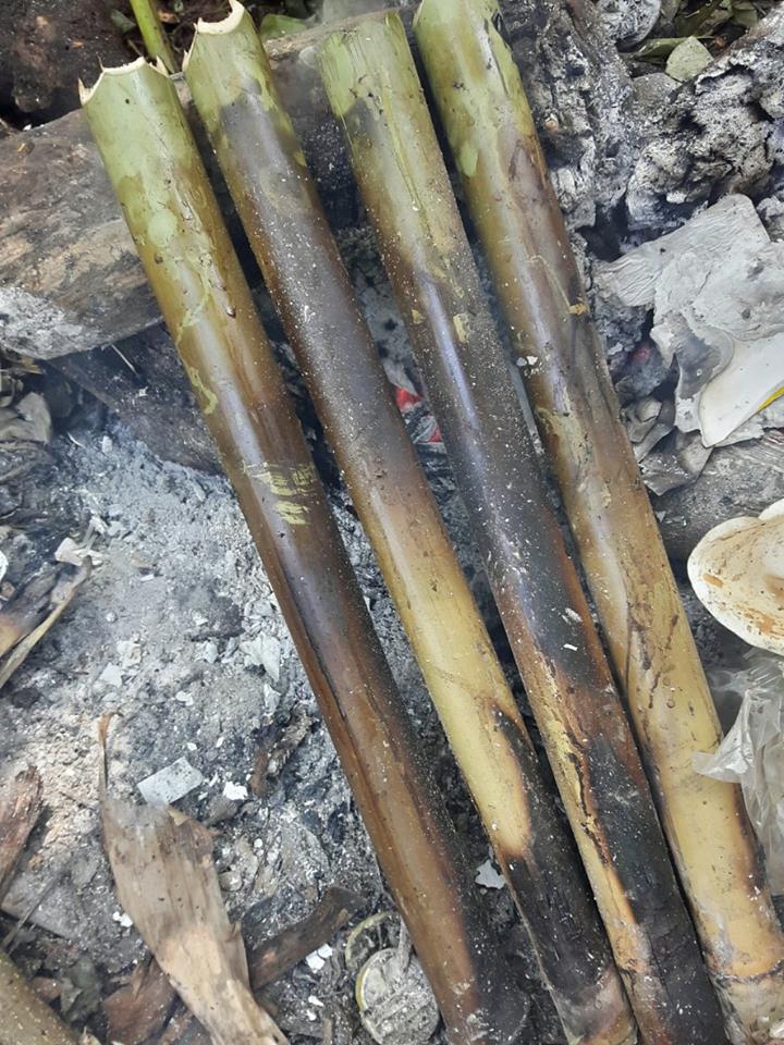 คำอธิบาย : ข้าวหลาม เป็นการทำข้าวให้สุกโดยใช้กระบอกไม้ไผ่เป็นภาชนะในการเผา เป็นหนึ่งในวิธีการหุงหาอาหารเพื่อดำรงชีพในการเดินป่า อุทยานแห่งชาติดงหัวสาว ที่ราบสูงบอละเวน เมืองปากซอง ประเทศลาว (ปากเซ แขวงจำปาสัก สปป.ลาว) |