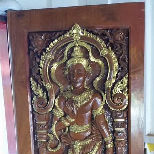 | ชื่อเรื่อง : ประตูโบสถ์แกะสลักเป็นรูปเทวดาที่วัดพระธาตุพนม อำเภอธาตุพนม จังหวัดนครพนม |