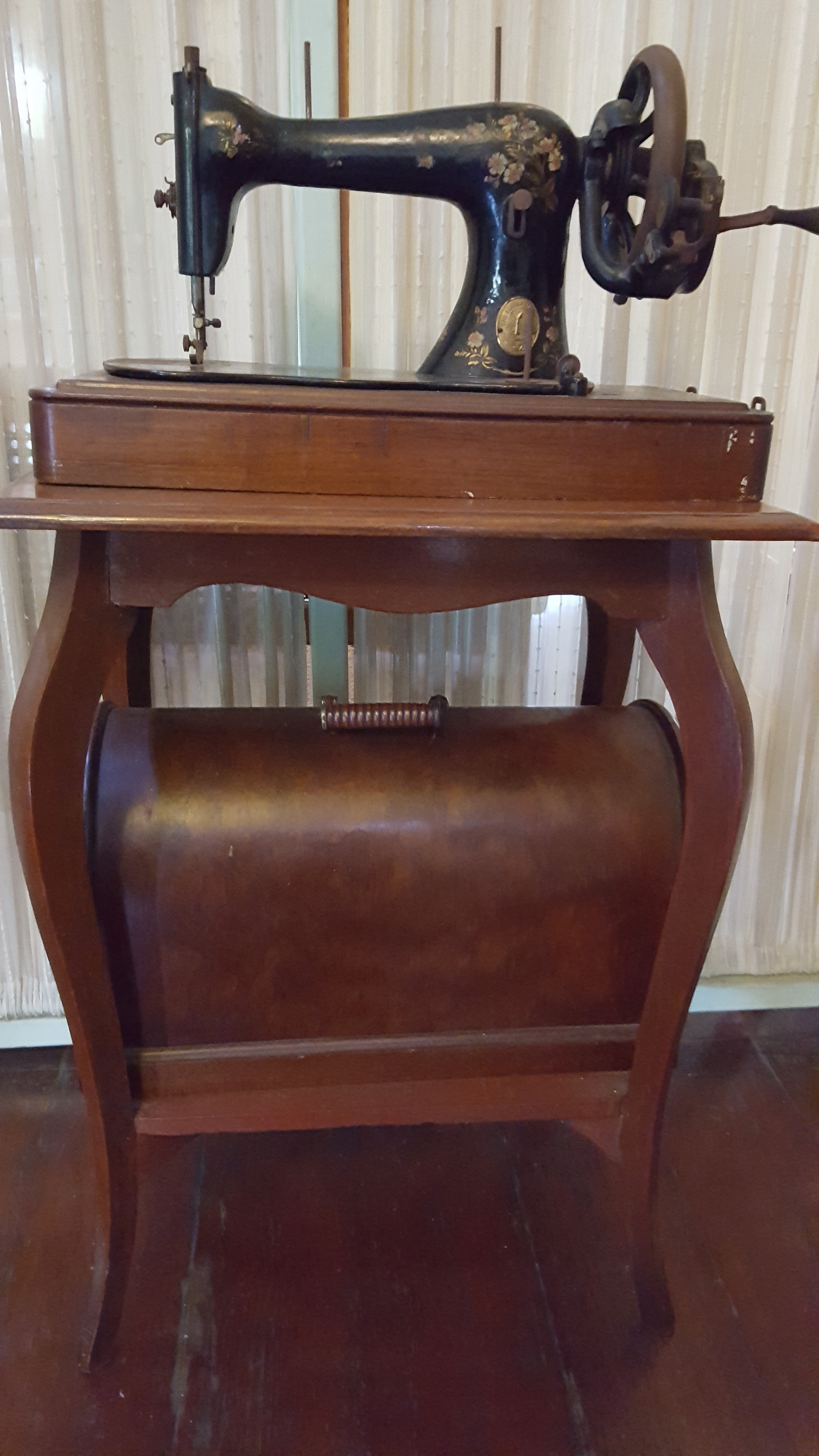 | คำอธิบาย : จักรเย็บผ้า สิ่งของจัดแสดงที่คุ้มเจ้าหลวงเมืองแพร่ หรือจวนผู้ว่าราชการจังหวัดแพร่ ซึ่งปัจจุบันได้เปิดจัดแสดงเป็นพิพิธภัณฑ์ให้บุคคลทั่วไปเข้าเยี่ยมชมได้ แม่เจ้าบัวไหลเป็นอัครชายาของเจ้าหลวงเมืองแพร่ เป็นผู้มีศิลปะและฝีมือยอดเยี่ยมในการเย็บปักถักร้อย จนเป็นที่เลื่องลือไปทั่ว โดยได้ปักผ้าม่าน หมอนต่างๆ และเครื่องใช้อื่นๆ ถวายรัชกาลที่ ๕ จนเป็นที่โปรดปราน |