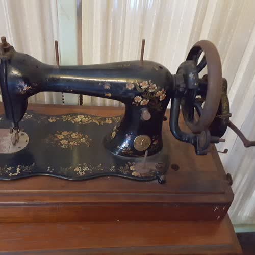 | คำอธิบาย : จักรเย็บผ้า สิ่งของจัดแสดงที่คุ้มเจ้าหลวงเมืองแพร่ หรือจวนผู้ว่าราชการจังหวัดแพร่ ซึ่งปัจจุบันได้เปิดจัดแสดงเป็นพิพิธภัณฑ์ให้บุคคลทั่วไปเข้าเยี่ยมชมได้ แม่เจ้าบัวไหลเป็นอัครชายาของเจ้าหลวงเมืองแพร่ เป็นผู้มีศิลปะและฝีมือยอดเยี่ยมในการเย็บปักถักร้อย จนเป็นที่เลื่องลือไปทั่ว โดยได้ปักผ้าม่าน หมอนต่างๆ และเครื่องใช้อื่นๆ ถวายรัชกาลที่ ๕ จนเป็นที่โปรดปราน |