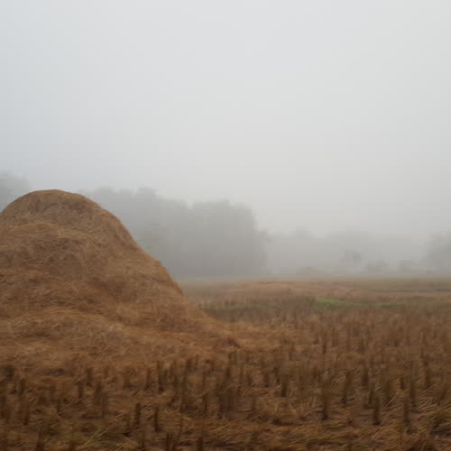 | คำอธิบาย : กองฟางที่เกิดจากการนวดข้าวด้วยเครื่องจักรเพื่อคัดแยกเมล็ดข้าวออกจากรวง และต้นข้าว |