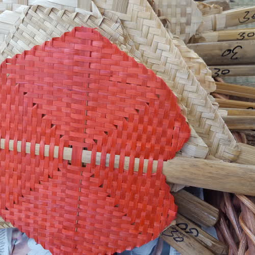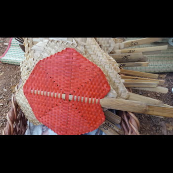 | คำอธิบาย : พัดที่จักสานจากไม้ไผ่ งานหัตถกรรมพื้นบ้านที่เกิดจากภูมิปัญญาของชาวบ้าน |