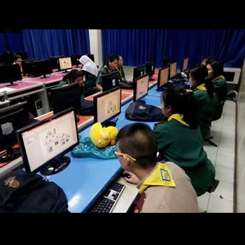 (2560). บรรยากาศเด็กๆ นั่งวาดรูปด้วย Microsoft PowerPoint,