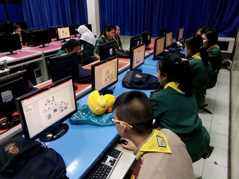 บรรยากาศเด็กๆ นั่งวาดรูปด้วย Microsoft PowerPoint ได้รับใบอนุญาตภายใต้ ให้เผยแพร่-ดัดแปลง-โดยต้องระบุที่มา 3.0 Thailand.