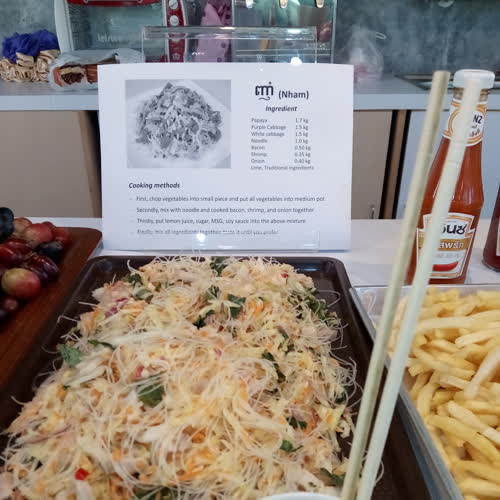 | คำอธิบาย : ยวม Ngam อาหารพื้นเมืองกัมพูชา รสชาติคล้ายยำวุ้นเส้น ใส่ไข่และผักดอง |