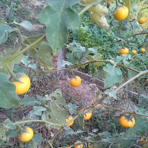 | คำอธิบาย : มะเขือขื่น มีชื่อเรียกอื่นว่า มะเขือแจ้ มะเขือดิน มะเขือเหลือง จัดอยู่ในวงศ์มะเขือ ผลมีผิวเรียบมัน เมื่อสุกแล้วจะเป็นสีเหลืองสด จะมีกลิ่นเฉพาะ มีรสขื่น ภายในผลจะมีเมล็ดจำนวนมาก ผลแก่นิยมนำมาปรุงเป็นอาหาร โดยจะใช้เฉพาะส่วนเปลือกและเนื้อ (แยกเมล็ด เนื่องจากมีรสขื่น) มีคุณค่าทางโภชนาการและมีสรรพคุณทางยา |