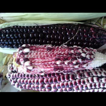 | คำอธิบาย : ข้าวโพดข้าวเหนียวลูกผสมสีม่วง ข้าวโพดข้าวเหนียว บางท้องถิ่นเรียก ข้าวโพดสาลี จะมีฝักและเมล็ดใหญ่กว่าข้าวโพดเทียน เมล็ดสีขาว ม่วง ฝักสดเมื่อต้มรับประทาน จะมีลักษณะเหนียวมัน คล้ายแป้งข้าวเหนียว |