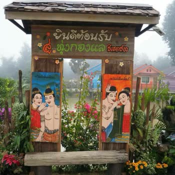 | คำอธิบาย : ป้ายยินดีต้อนรับ ที่ทุ่งกองแลรีสอร์ท อำเภอนาน้อย จังหวัดน่าน ที่มีการจำลองภาพวาดที่เป็นเอกลักษณ์ของเมืองน่าน กระซิบรักที่น่าน มาเป็น กระซิบรักที่นาน้อย |
