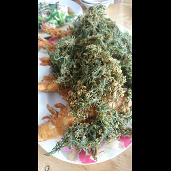 | ชื่อเรื่อง : กุ้งชุปแป้งทอดโรยหน้าด้วยใบชะครามทอด |