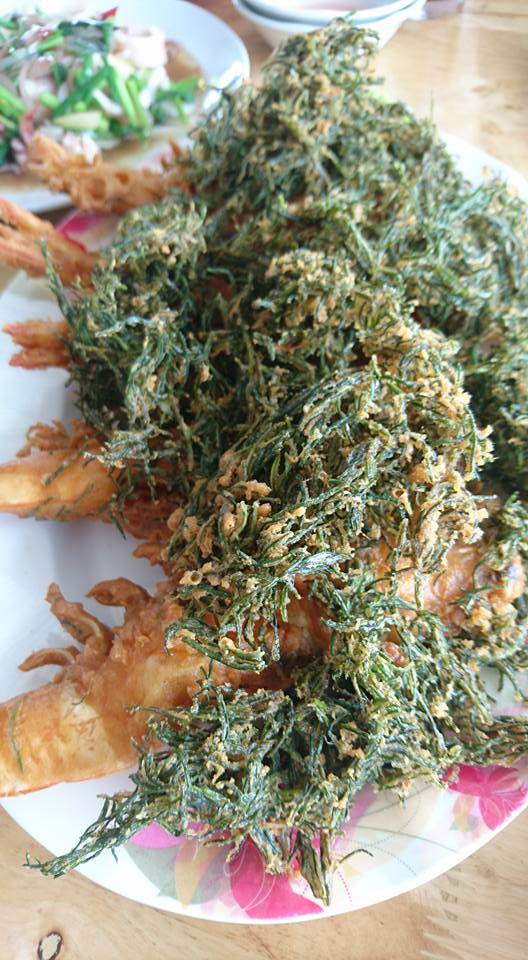 รีวิว : กุ้งชุปแป้งทอดโรยหน้าด้วยใบชะครามทอด