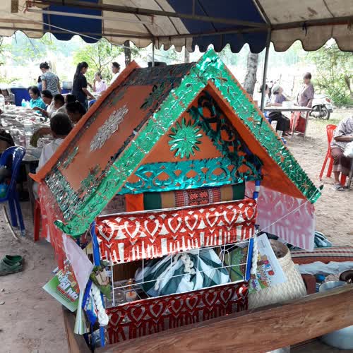 | คำสำคัญ : ปราสาทผึ้งสำหรับผู้วายชนม์, traditional funeral of Northeast people, บำเพ็ญกุศลศพ, ฌาปนกิจ, การเผาศพด้วยฟืนถ่านและน้ำมัน, สวดศพ, ลอยอังคาร, โปรยทาน, funeral, งานศพ, ประเพณีอีสาน |