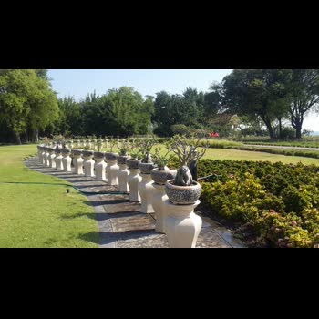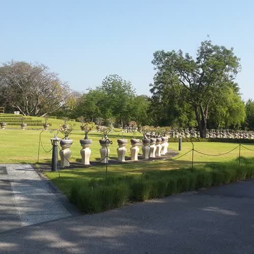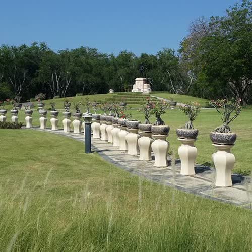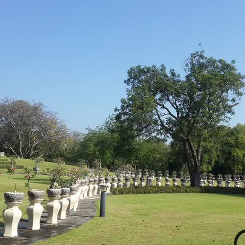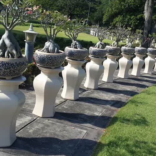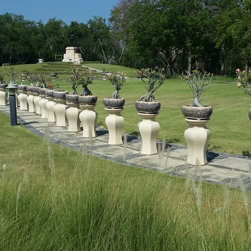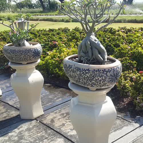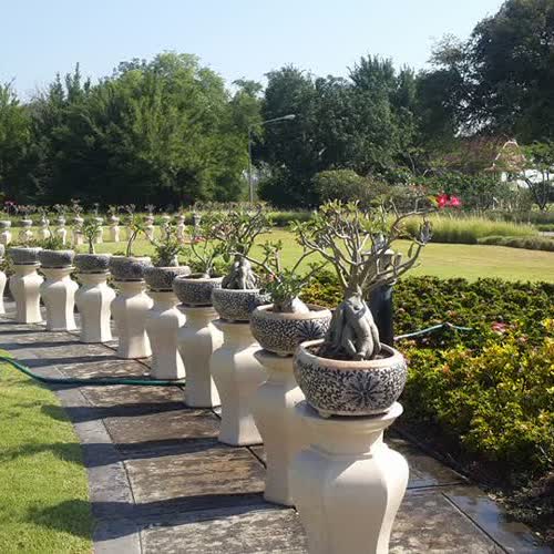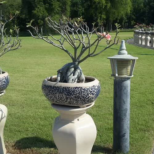 | คำอธิบาย : กระถางลายครามที่ใช้ตกแต่งในการพระบรมศพสมเด็จพระภคินีเธอ เจ้าฟ้าเพชรรัตน์ราชสุดาฯ หลังจากนั้นแล้วได้นำไปตกแต่งในสถานที่หลายแห่งที่เกี่ยวข้องกับพระองค์ ส่วนนี้อยู่ในสวนหน้าพระบรมราชานุสาวรีย์รัชกาลที่ 6 พระราชนิเวศน์มฤทายวัน กระถางแต่ละใบงดงามด้วยรูปทรงและลวดลายเครือเถาแบบเดียวกัน รวมทั้งพระนามาภิไธยย่อและตราประจำพระองค์ |