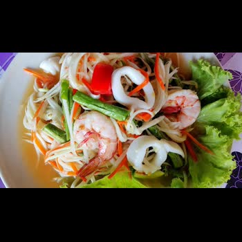 คำอธิบาย : อาหารทะเล ส้มตำทะเล ส้มตำหมึก ส้มตำกุ้ง ส้มตำปู ส้มตำหมึกกุ้ง เป็นอาหารประเภทยำ |