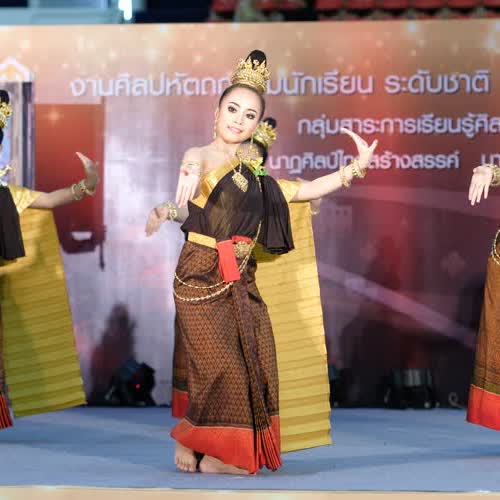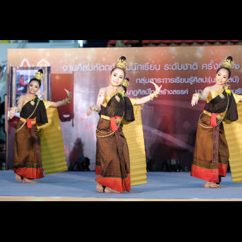 | คำสำคัญ : การฟ้อนรำ, สพฐ., ศิลปหัตถกรรมนักเรียน, การแสดงนาฏศิลป์, การรำ, งานศิลปหัตถกรรมนักเรียนระดับชาติ ครั้งที่ 66, การแข่งขันนาฏศิลป์ |
