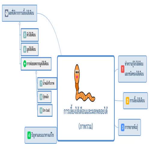 | ชื่อเรื่อง : แผนที่ความคิด (Mind map) การเลี้ยงไส้เดือนและผลพลอยได้ |