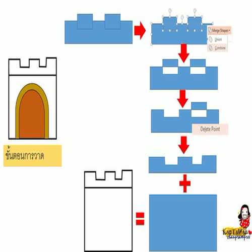 | คำอธิบาย : การวาดปราสาทด้วย Microsoft PowerPoint |