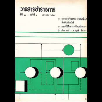 | คำสำคัญ : ข้าราชการพลเรือน, พระราชบัญญัติระเบียบข้าราชการพลเรือน, วารสารข้าราชการ, สำนักงาน ก.พ., ก.พ., Civil Officials' Magazine, ข้าราชการพลเรือนสามัญ |