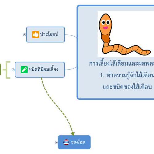 | คำสำคัญ : การเลี้ยงไส้เดือนและผลพลอยได้, ไส้เดือน, mind map, แผนที่ความคิด |