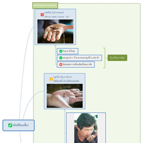 "แผนที่ความคิด (Mind map) ทำความรู้จักไส้เดือนและชนิดของไส้เดือน (ชนิดที่นิยมเลี้ยง)".