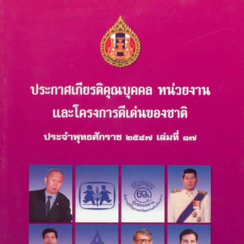 ประกาศเกียรติคุณบุคคล หน่วยงาน โครงการดีเด่นของชาติ เล่มที่ 17 พ.ศ. 2547 ได้รับใบอนุญาตภายใต้ ให้เผยแพร่-ดัดแปลง-โดยต้องระบุที่มา 3.0 Thailand.