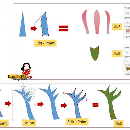 คำอธิบาย : การวาดดอกปัตตาเวียสีชมพูด้วย Microsoft PowerPoint |