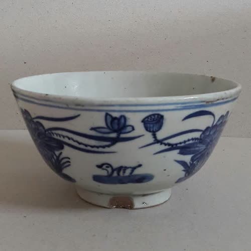 คำสำคัญ : เครื่องถ้วยโบราณ, ชามโบราณ, ชามลายคราม, ชามลายคราม ลายกอบัว |