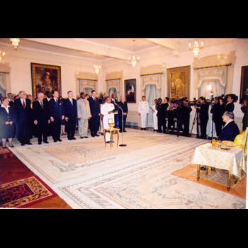 | คำอธิบาย : ศาลปกครองเป็นเจ้าภาพจัดการประชุมใหญ่สมาคมศาลปกครองสูงสุดระหว่างประเทศ ครั้งที่ ๙ ระหว่างวันที่ ๒๒ – ๒๔ พฤศจิกายน ๒๕๕๐ ณ โรงแรมแชงกรี-ล่า กรุงเทพมหานคร ในหัวข้อเรื่อง “สถานะของตุลาการศาลปกครอง” ซึ่งเป็นการประชุมครั้งสำคัญในระดับนานาชาติที่มีผู้นำองค์กรตุลาการด้านคดีปกครองจากทั่วโลกเข้าร่วมประชุม ซึ่งพระบาทสมเด็จพระปรมินทรมหาภูมิพลอดุลยเดชได้ทรงพระกรุณาโปรดเกล้าฯ ให้ประธานศาลปกครองสูงสุดนำคณะกรรมการบริหารสมาคมศาลปกครองสูงสุดระหว่างประเทศ และหัวหน้าคณะผู้เข้าร่วมประชุมจากประเทศต่างๆ เข้าเฝ้าฯ และทูลเกล้าฯ ถวายเหรียญที่ระลึกการประชุมด้วย นับเป็นพระมหากรุณาธิคุณอย่างหาที่สุดมิได้ |