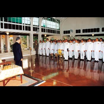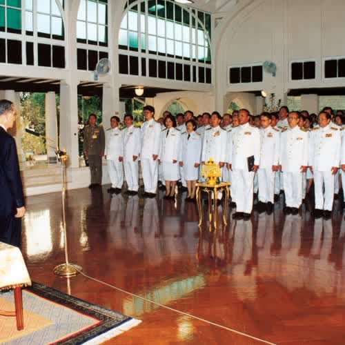 | คำอธิบาย : พระบาทสมเด็จพระปรมินทรมหาภูมิพลอดุลยเดชได้ทรงพระกรุณาโปรดเกล้าฯ พระราชทานพระบรมราชวโรกาสให้ตุลาการศาลปกครองสูงสุดและตุลาการศาลปกครองชั้นต้นเข้าเฝ้าฯ ถวายสัตย์ปฏิญาณก่อนเข้ารับหน้าที่ พร้อมทั้งพระราชทานพระราชดำรัสเพื่อเป็นเครื่องเตือนใจและเป็นแนวทางในการปฏิบัติภารกิจ ตุลาการศาลปกครองชั้นต้นรุ่นที่ 1 วันที่ 21 ก.พ. 2544 |