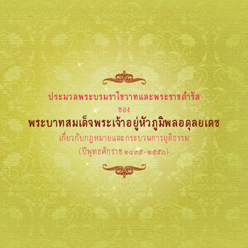 "ประมวลพระบรมราโชวาทและพระราชดำรัสเกี่ยวกับกฎหมายและกระบวนการยุติธรรม (พ.ศ. 2495 - 2556)".