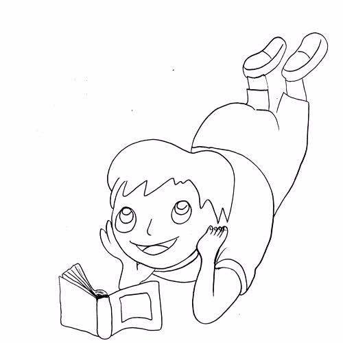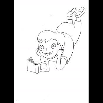 | คำอธิบาย : ภาพวาดเด็กผู้ชายนอนอ่านหนังสือ |
