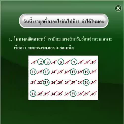 | คำอธิบาย : สถาบันส่งเสริมการสอนวิทยาศาสตร์และเทคโนโลยี (สสวท.)ร่อนหาจำนวนเฉพาะ |