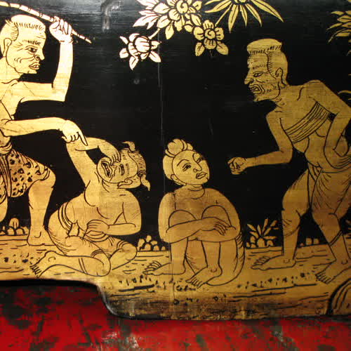 | ชื่อเรื่อง : ภาพวาดวรรณกรรมพื้นบ้านยายกับตาปลูกถั่วปลูกงา |