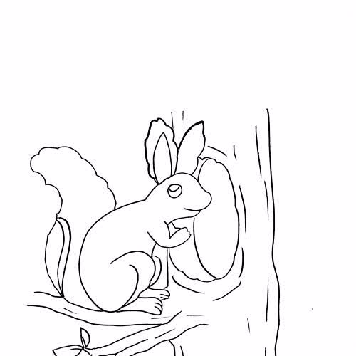 | คำอธิบาย : ภาพวาดกระรอกเข้าโพรง |