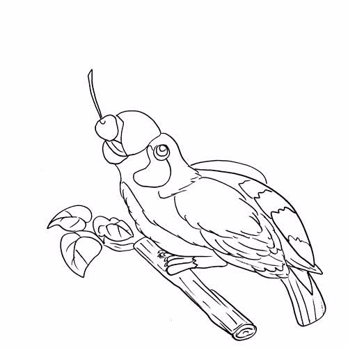 | คำอธิบาย : ภาพวาดนกแก้วกินผลไม้ |