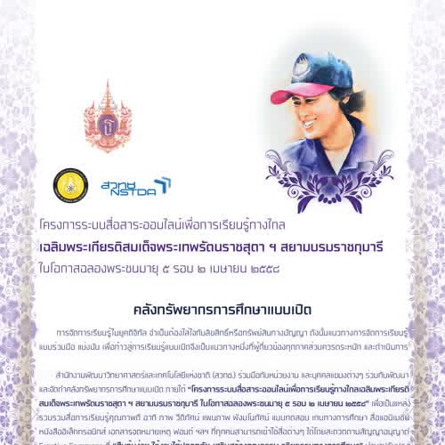 | ผู้สร้างสรรค์/ผู้แต่ง/เจ้าของผลงาน : โครงการระบบสื่อสาระออนไลน์เพื่อการเรียนรู้ทางไกล เฉลิมพระเกียรติฯ |