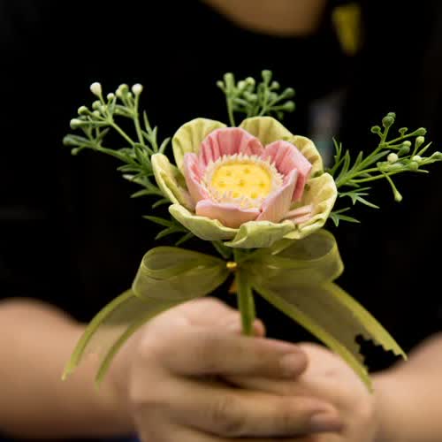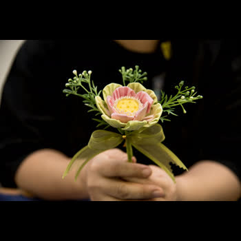| คำอธิบาย : การนำดอกบัวประดิษฐ์ มาตาแต่ง โดยใช้ดอกไม้แซมและโบว์ผ้า ให้สวยงาม ใช้เป็นของที่ระลึกในโอกาสต่างๆ |