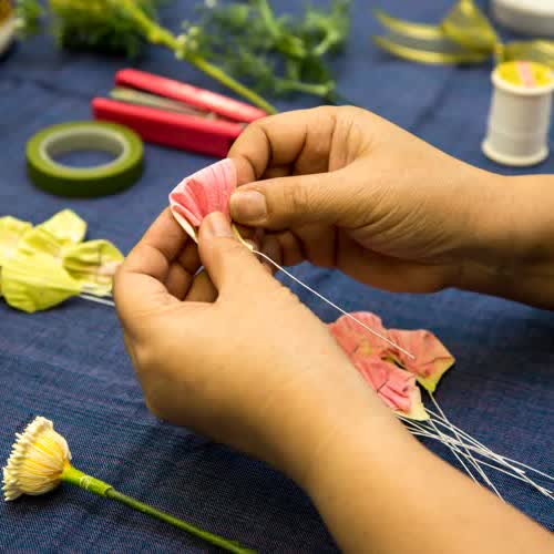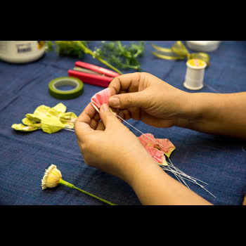 | คำอธิบาย : การพับกลีบดอกบัวกระดาษสาเพื่อนำมาประกอบดอกบัวประดิษฐ์ |