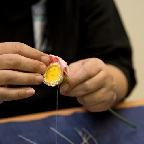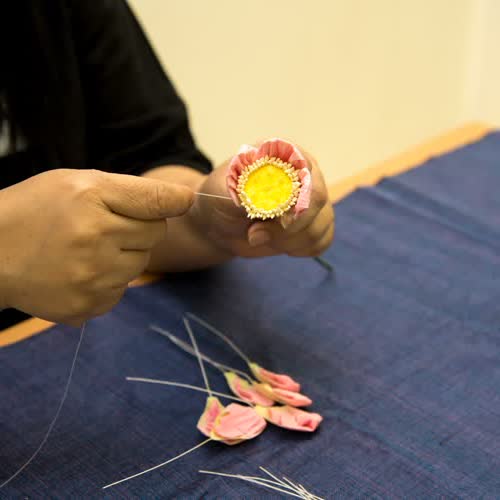 | คำอธิบาย : การประกอบดอกบัวประดิษฐ์โดยการกลีบบัวที่พับไว้มาประกอบเป็นดอกบัวที่ละกลีบ |