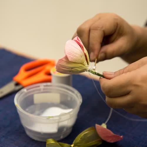 | คำสำคัญ : การประดิษฐ์ดอกไม้, เกสรดอกบัว, บัว, ดอกบัว, งานประดิษฐ์, หอสมุดและคลังความรู้มหาวิทยาลัยมหิดล, ดอกไม้ประดิษฐ์, งานฝีมือ, กลีบดอกบัว |