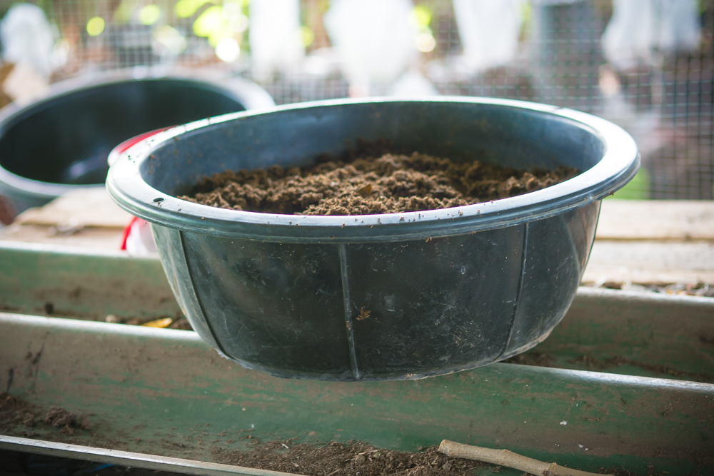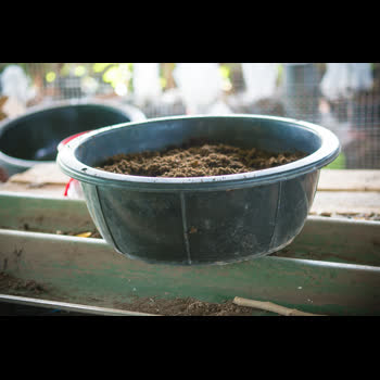 | คำอธิบาย : กะละมังไส้เดือนที่พร้อมย้ายไปวางตามชั้น เพื่อดูแลต่อไป |