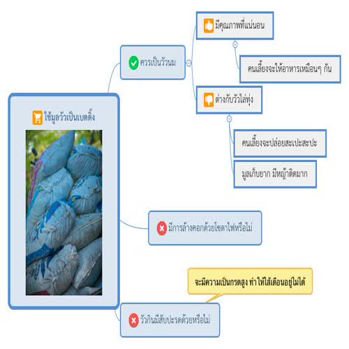 คำอธิบาย : เป็นแผนที่ความคิดเพื่ออธิบายภาพรวมของสื่อชุด การเลี้ยงไส้เดือนและผลพลอยได้ ตอนที่ 2 ในส่วนของการใช้มูลวัวเป็นเบดดิ้ง |