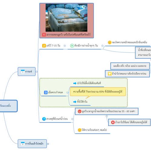 | คำอธิบาย : เป็นแผนที่ความคิดเพื่ออธิบายภาพรวมของสื่อชุด การเลี้ยงไส้เดือนและผลพลอยได้ ตอนที่ 2 ในส่วนของการเตรียมเบดดิ้งแบบแช่ |