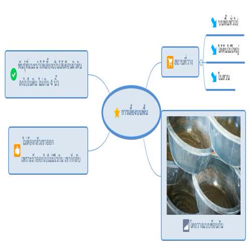 | ชื่อเรื่อง : แผนที่ความคิด (Mind map) การเลี้ยงไส้เดือน (การเลี้ยงบนพื้น) |