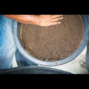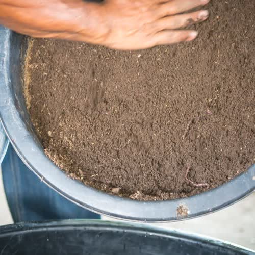 คำอธิบาย : ถ้าต้องการใช้มูลไส้เดือนเร็ว ก็สามารถปาดทุกอาทิตย์ได้ โดยเริ่มปาดได้เมื่อครบ 15 วันแล้ว หลังจากนั้นก็ปาดทุกอาทิตย์ ปาดจนปาดไม่ลงหรือรู้สึกทึบๆ แปลว่าเขายังกินไม่หมดก็ให้หยุดปาด สิ่งที่ปาดมาได้จะเป็นมูลไส้เดือน |